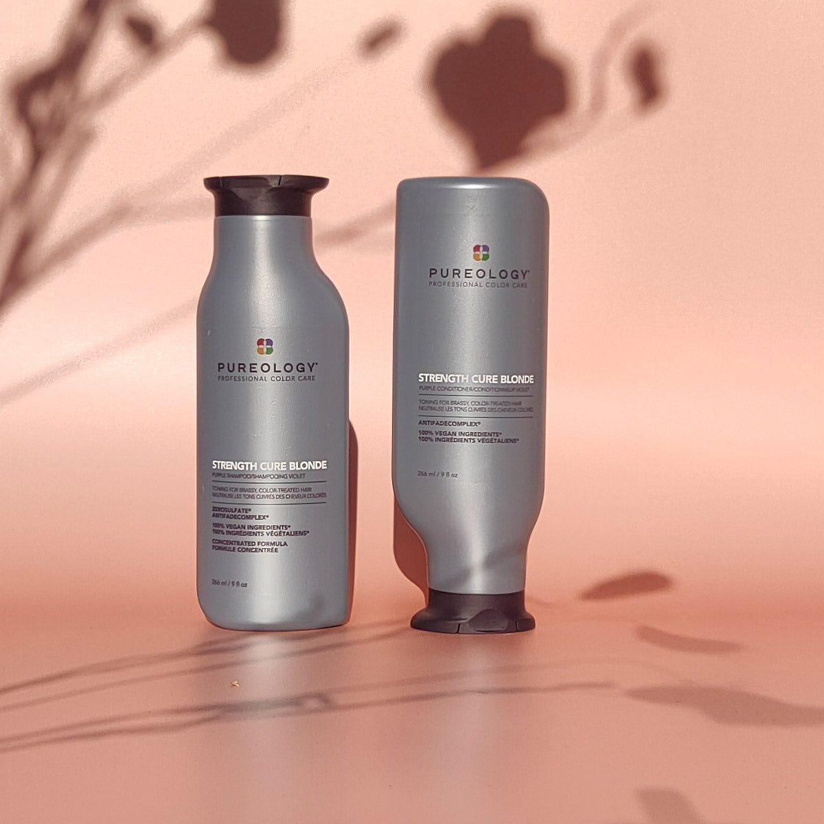 \nCreated with violet toning properties, the Strength Cure Blonde Conditioner instantly conditions, detangles and tones all shades of colour-treated blonde, highlighted and lightened hair.